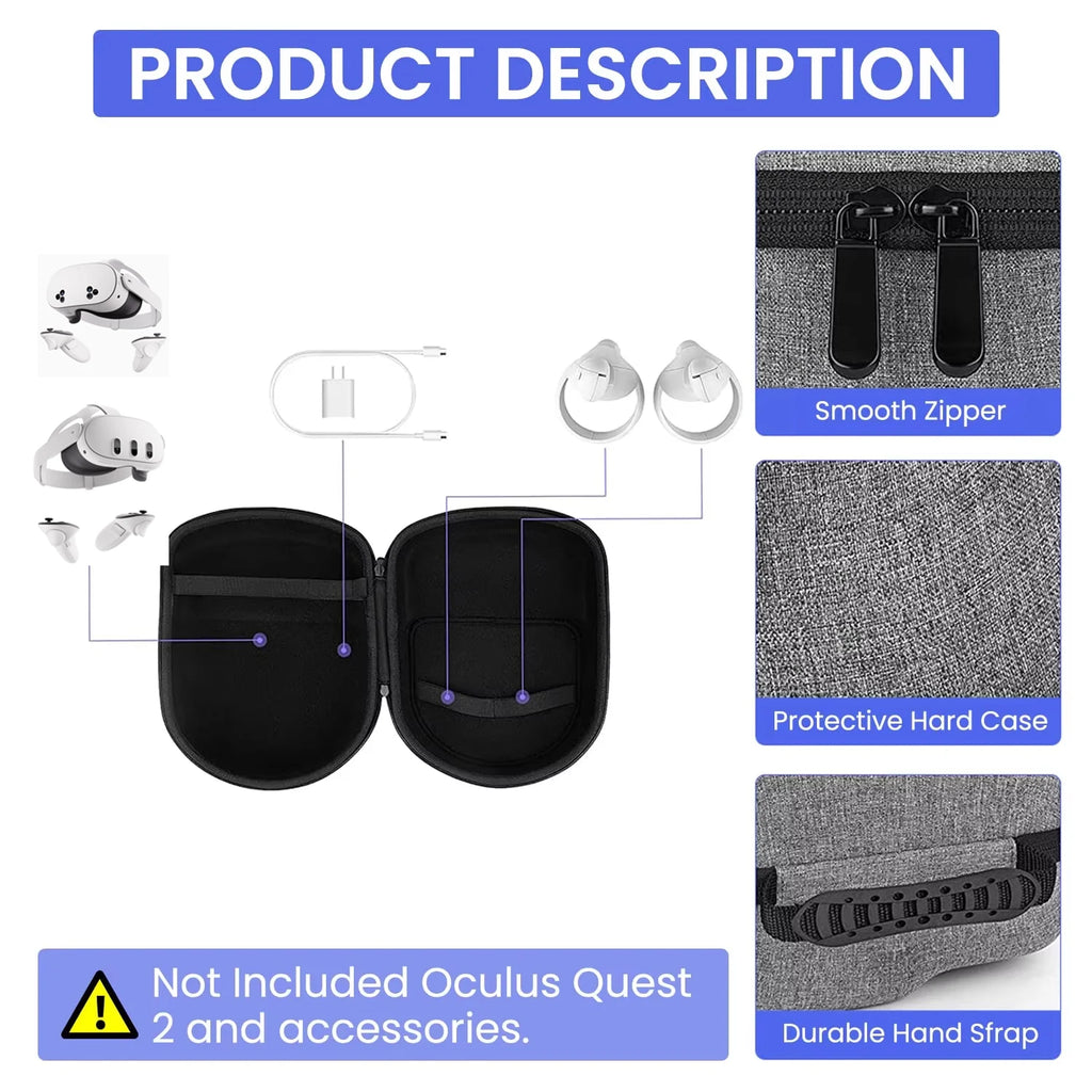 MUST HAVE ACCESSORY BAG FOR OCULUS QUEST 2/3/3s: Practical and portable accessories bag for Oculus Quest 2/3/3s, well store your device, keeping the Oculus Quest 2/3/3s stay clean and well organized.