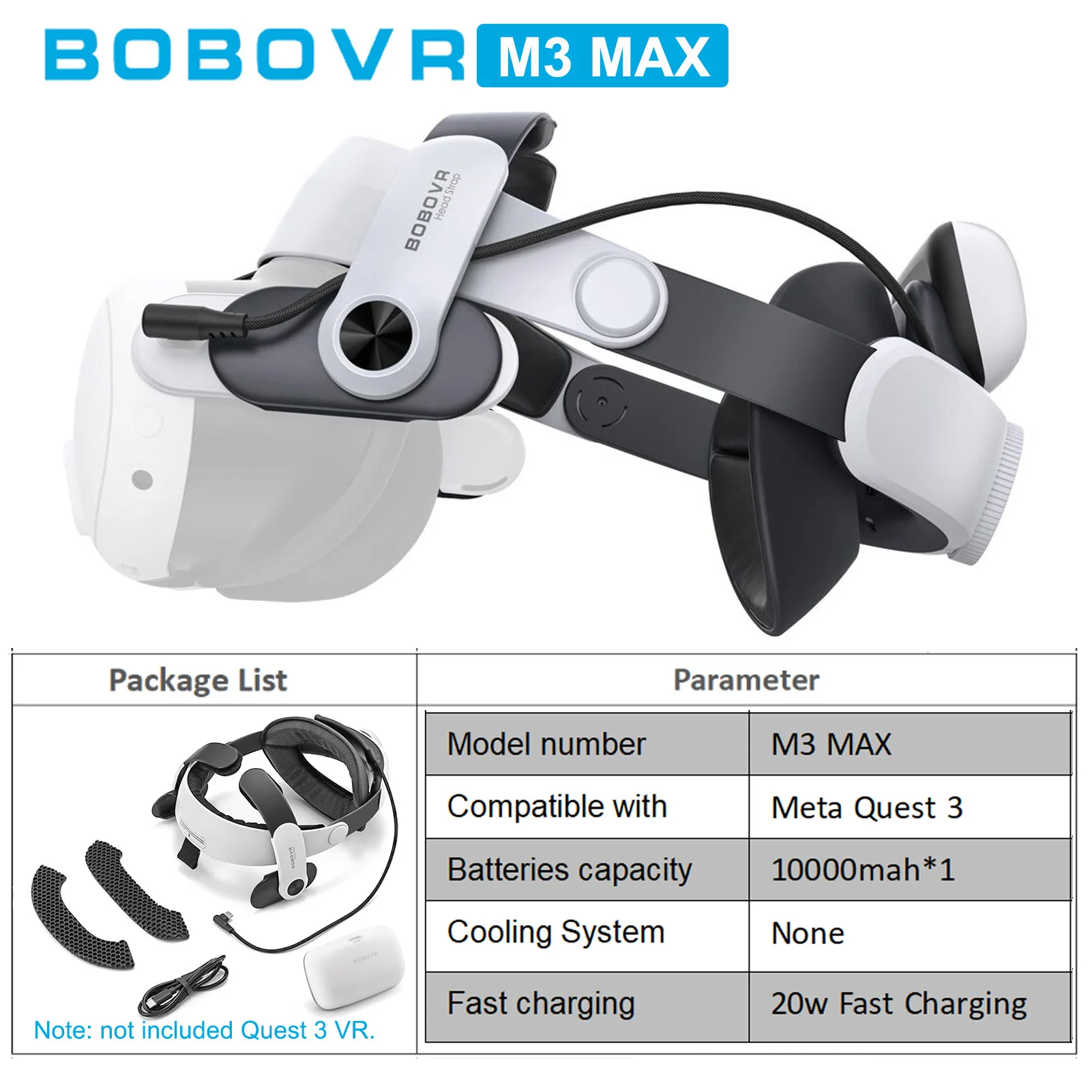 BOBOVR Battery Pack Head Strap Accessories, Compatible with Meta Quest 3/Quest 3s,M3PRO/M3 MAX/S3PRO (option)