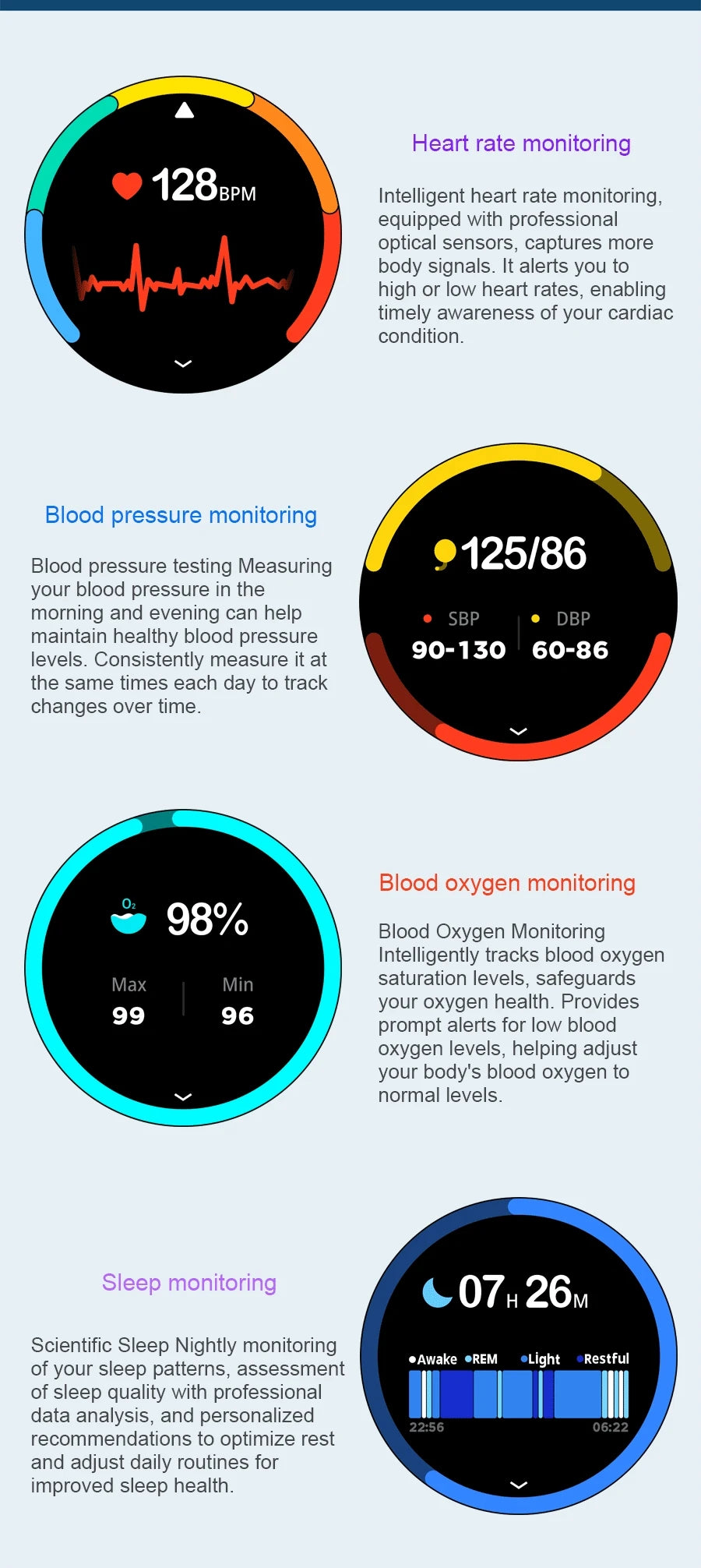 Metrics measured: Heart Rate Monitor,Other,Blood Oxygen Monitor,Sleep Monitor,Blood Pressure Monitor,Stress Monitor